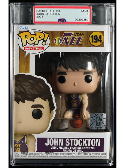 Score big with this Funko Pop! vinyl figure of NBA legend, John Stockton of the Utah Jazz. Graded PSA 9 MINT, it's a slam dunk for any collector. Don't miss your chance to add this quirky and rare piece to your collection. (But don't expect him to pass the ball to you!)
