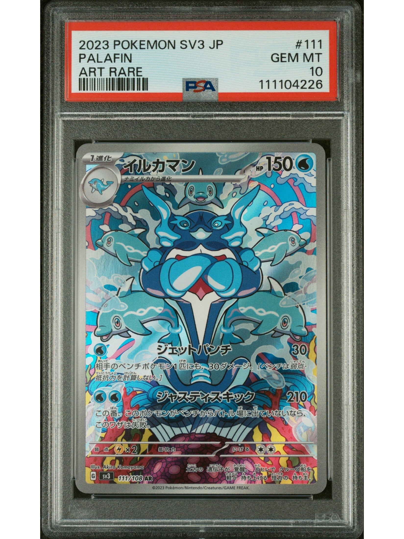 Pokemon Japanese Sv3 Ruler Of The Black Flame 111 Palafin Art Rare PSA 10 GEM MINT Cert #111104226